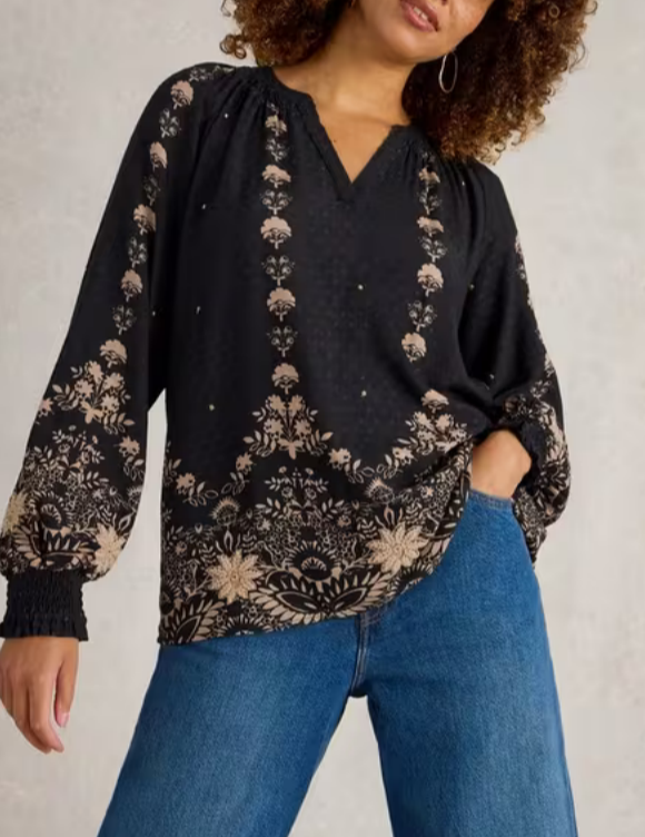 - MAIN: 100% Viscose ,EMBROIDERY 1: 71% Polyester, 29% Metalised FibreEMBROIDERY 2: 100% Polyester